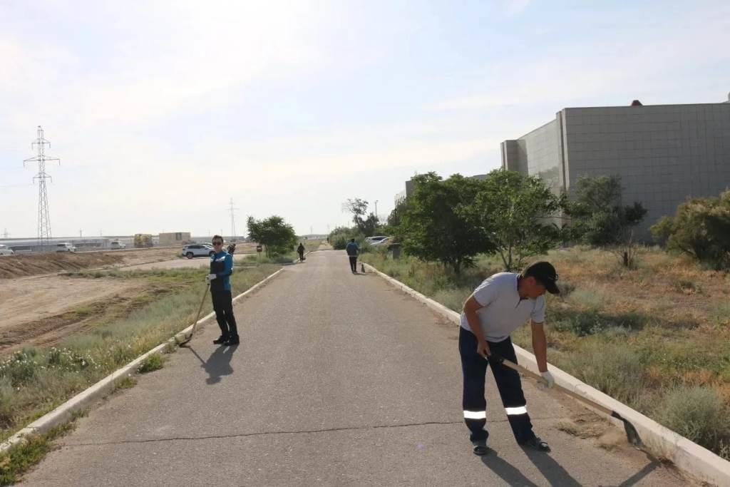 Негізгі жұмыстан бос және өндірістік процестерге қатыспаған зауыт жұмыскерлері, сондай-ақ мердігерлік ұйымдардың жұмыскерлері зауытқа іргелес жалпы көлемі 13,4 га аумақты ретке келтірді.