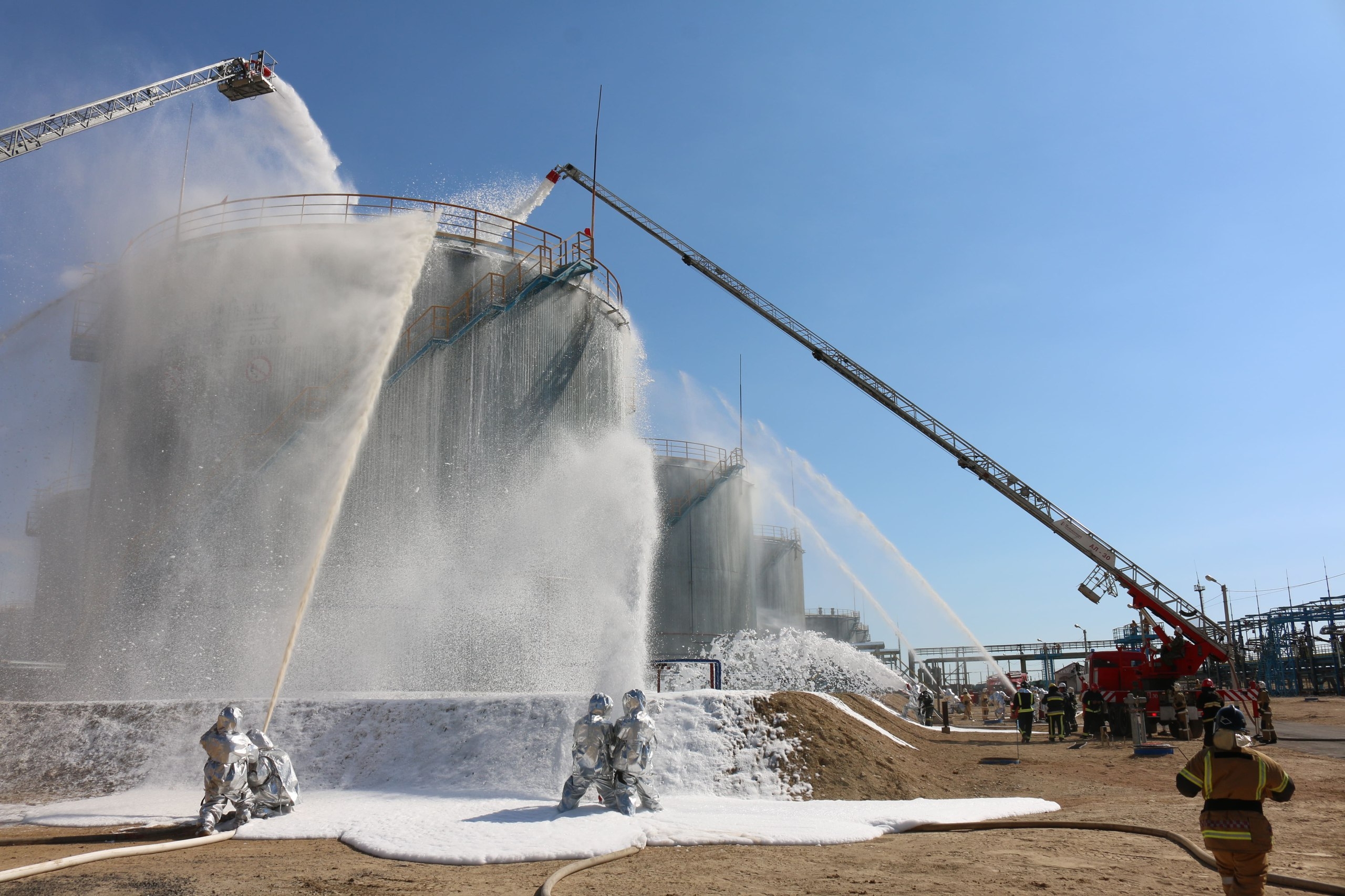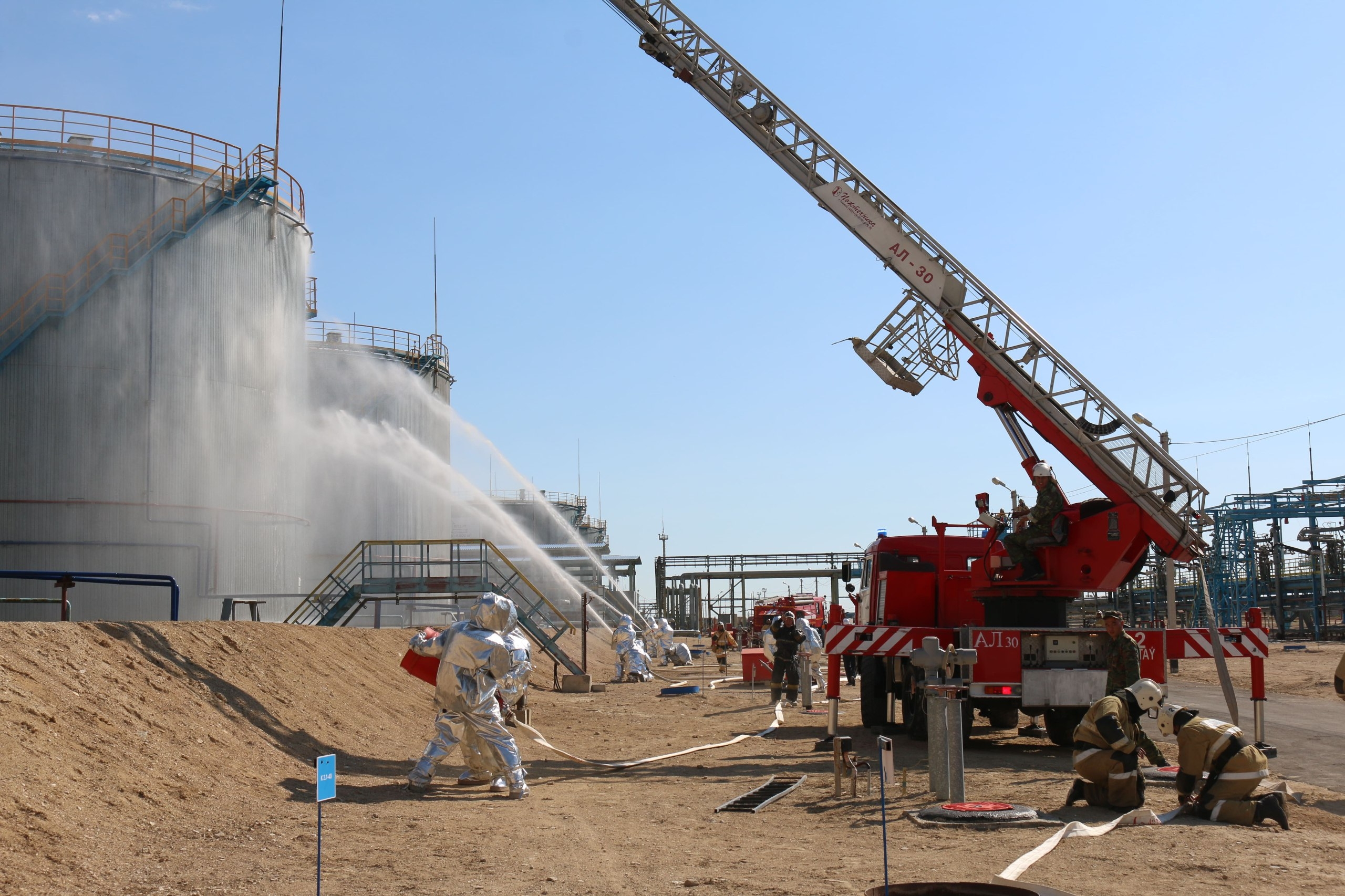 20 сентября на территории битумного завода ТОО «СП «CASPI BITUM» в Актау провели плановые пожарно-тактические учения с целью совершенствования практических навыков взаимодействия в условиях чрезвычайных ситуаций местных исполнительных органов, администрации завода и органов противопожарной службы по организации и управлению тушением пожаров и ликвидации аварии. Тема пожарно-тактических учений: тактика тушения пожаров в резервуарных парках, тушение условного пожара в резервуаре РВС № Т-236 объёмом 5 000 куб.м.